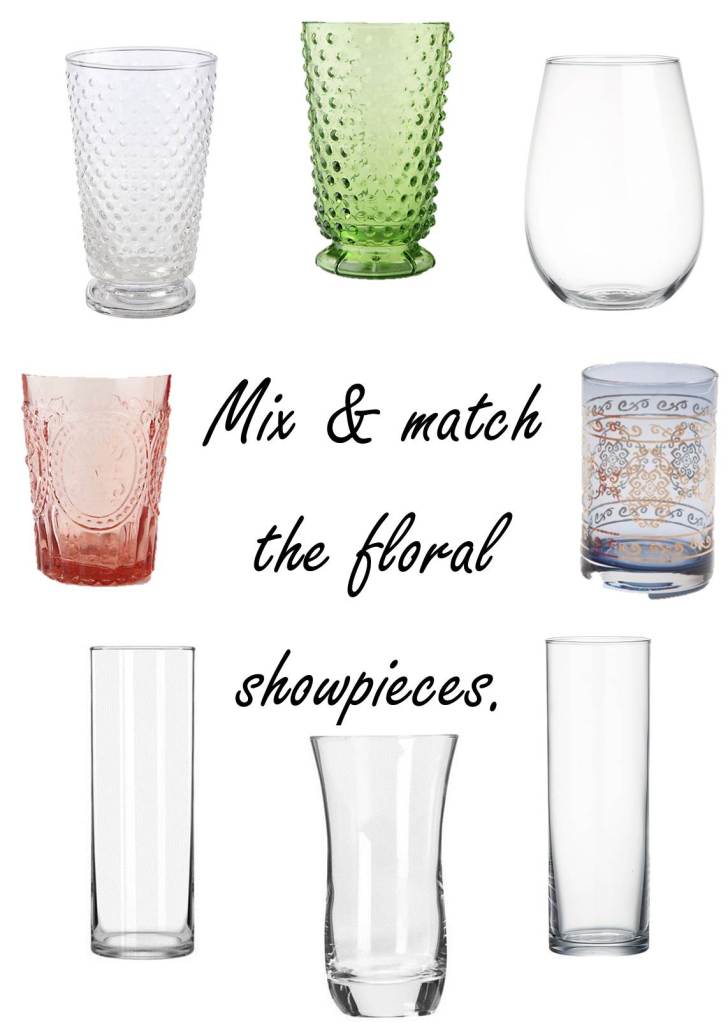 There are many options for votive candle and various sized floral arrangements without breaking the bank. If you’re looking for a good alternative to vases, take a look in the glassware section of your favorite store(s). You might be surprised by what you find and the deals you may be able to score.