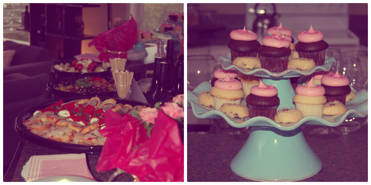 Michele envisioned a happy hour-like party, with people coming by after work – or before heading out on a Friday night – so the menu included items like tapas, an olive platter, local cheeses and meats board, and brie in brioche. And no party is complete without something sweet so mini cupcakes and shortbread cookies were ready for guests to enjoy. The bar included local favorites like Charles Smith’s Kung Fu Girl Riesling and Boom! Boom! Syrah and bourbon from Woodinville Whiskey Co.. I mixed one of my favorites, a pomegranate champagne punch, for those who wished to have a little bubbly.