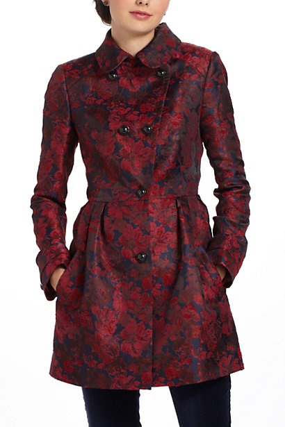 My annual scramble to find the right outfit for New Year’s Eve seems to kick in the day after Christmas. I love the thought of going to a party dressed to the nines and dancing the night away. Skipping the traditional LBD and finding something to make a statement in a crowd would be a lot of fun. Having the right coat to keep me warm during the cab ride would also be a must – and that little brocade number is perfect!