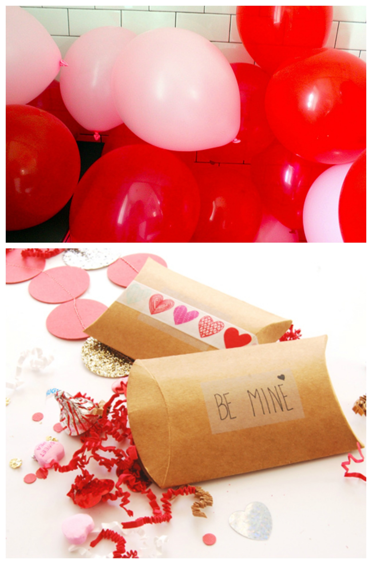 shower of balloons, via you are my fav; my kids would go nuts over the balloons! // valentine pillow boxes, via the proper pinwheel; perfect idea if you wish to give a special little gift to someone!