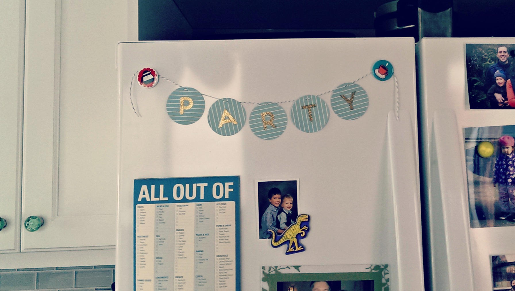 - Punch five large circles per garland invite, if using “PARTY.” Cut off excess as needed to maximize the paper’s usefulness. Hole Punch Tip: I flip the hole punch over so I can easily line up the holes right next to each other, minimizing wasted space between punches.