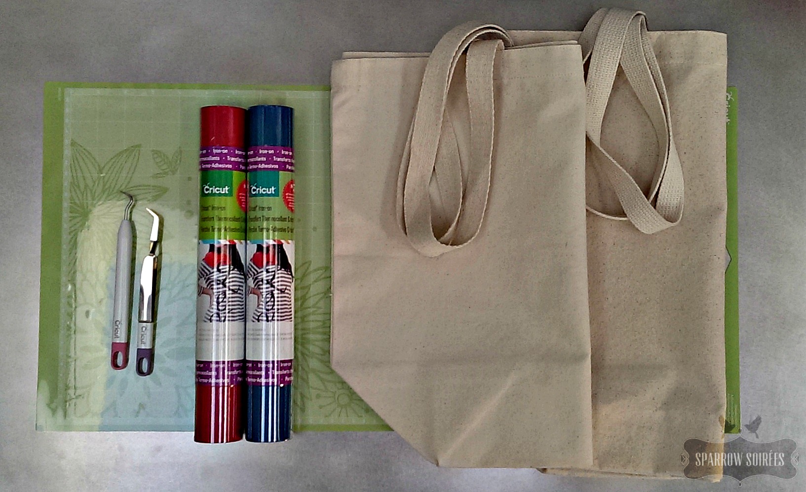 Tips: 1) I used a thick bath towel on our dining table, which was easier than the ironing board due to the lower height. 2) The day after I finished the bags, I noticed a few bubbles under a couple of the iron-ons, which meant it wasn’t completely sealed. With the iron, I heated the backside of the design first. Then I re-ironed the design, using a sheet of parchment paper – to protect the design and iron until the bubbles disappeared – and used the same ironing technique when I first applied the design. 3) Cricut’s YouTube channel has a great, quick Iron-on 101 video worth watching if you’re new to the iron-on world like me. 4) If you cannot see a lined sheet through the material but need lines/a grid, use chalk and a ruler to create light lines. Test a discreet area first with the chalk and wipe it off with a baby wipe or damp towel to see if it will remove easily.