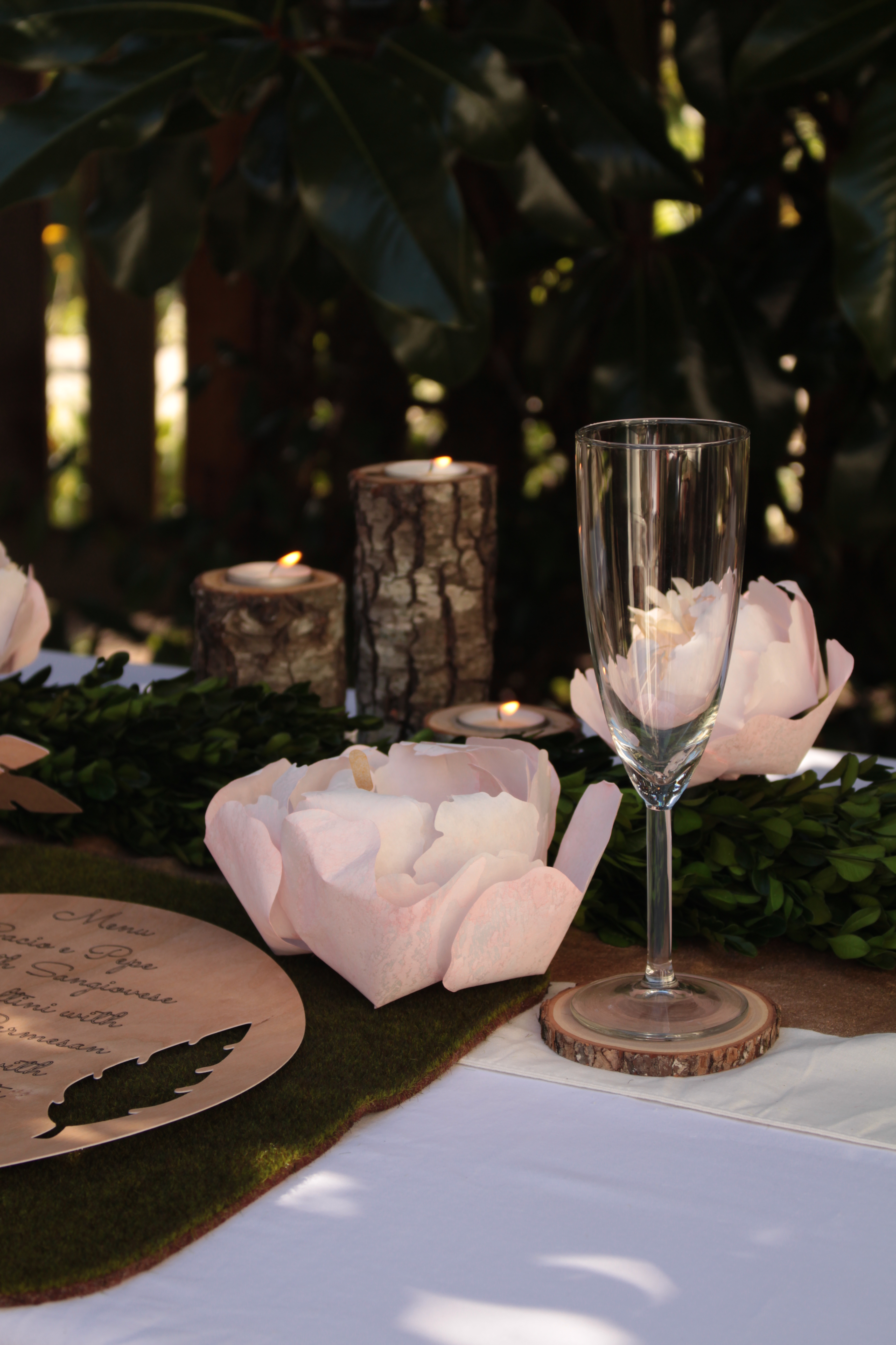 Backyard Party, Blush, Cricut, Cricut Design Space, Cricut Explore, Design Ideas, Design Space Star, Dinner Party, DIY, Entertaining & Gathering, Floral, Garland, Paper Flowers, Paper Peony, party, Party Decor, Peonies, Pink, Place Card, Place Setting, Reception, Tablescape, Tabletop, Thanksgiving, Wedding, Wood, Woodland
