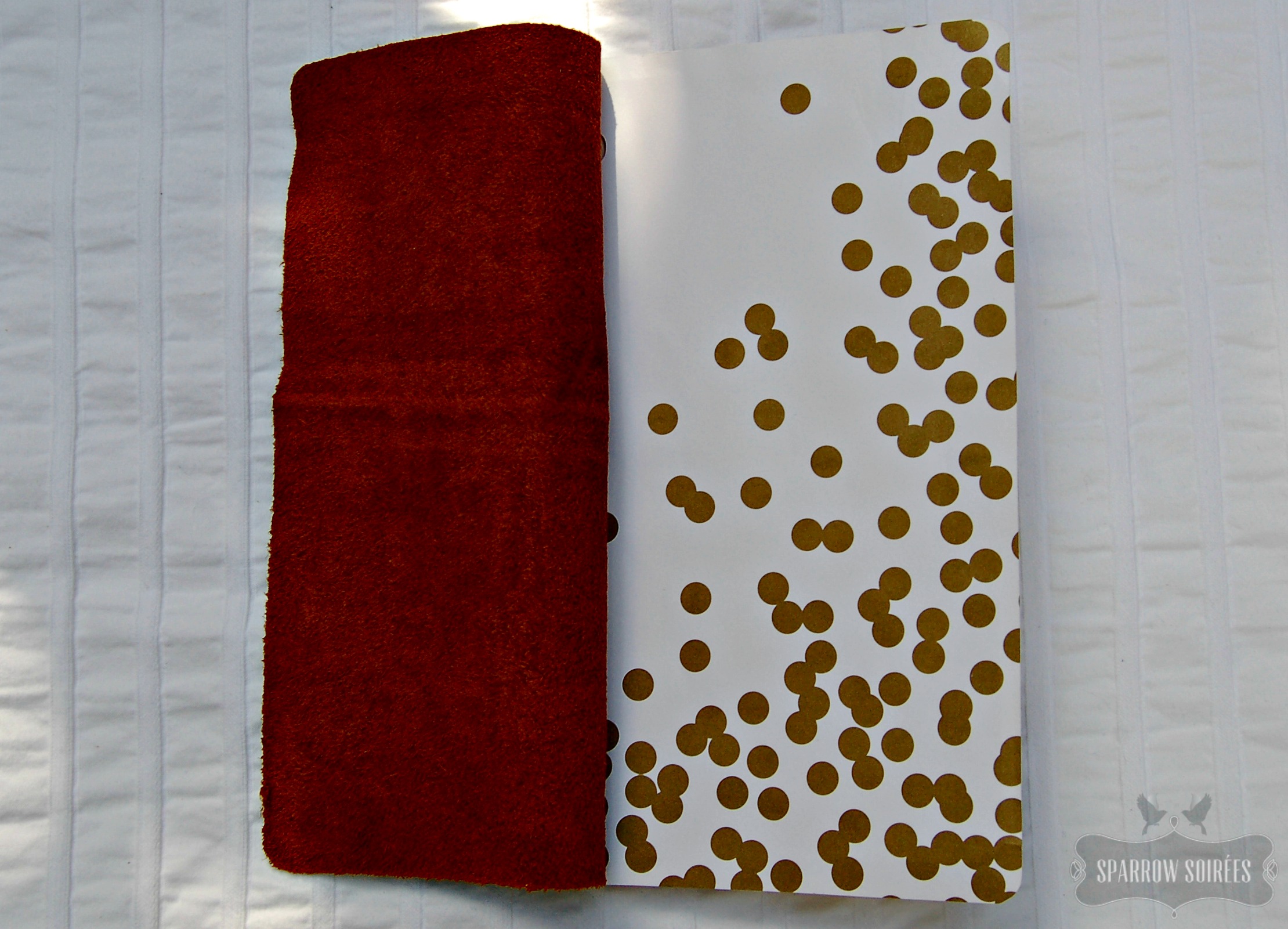 Once the leather and paper were cut to size, it was just a matter of putting everything together – and it was a little bit like making a sandwich (layers).