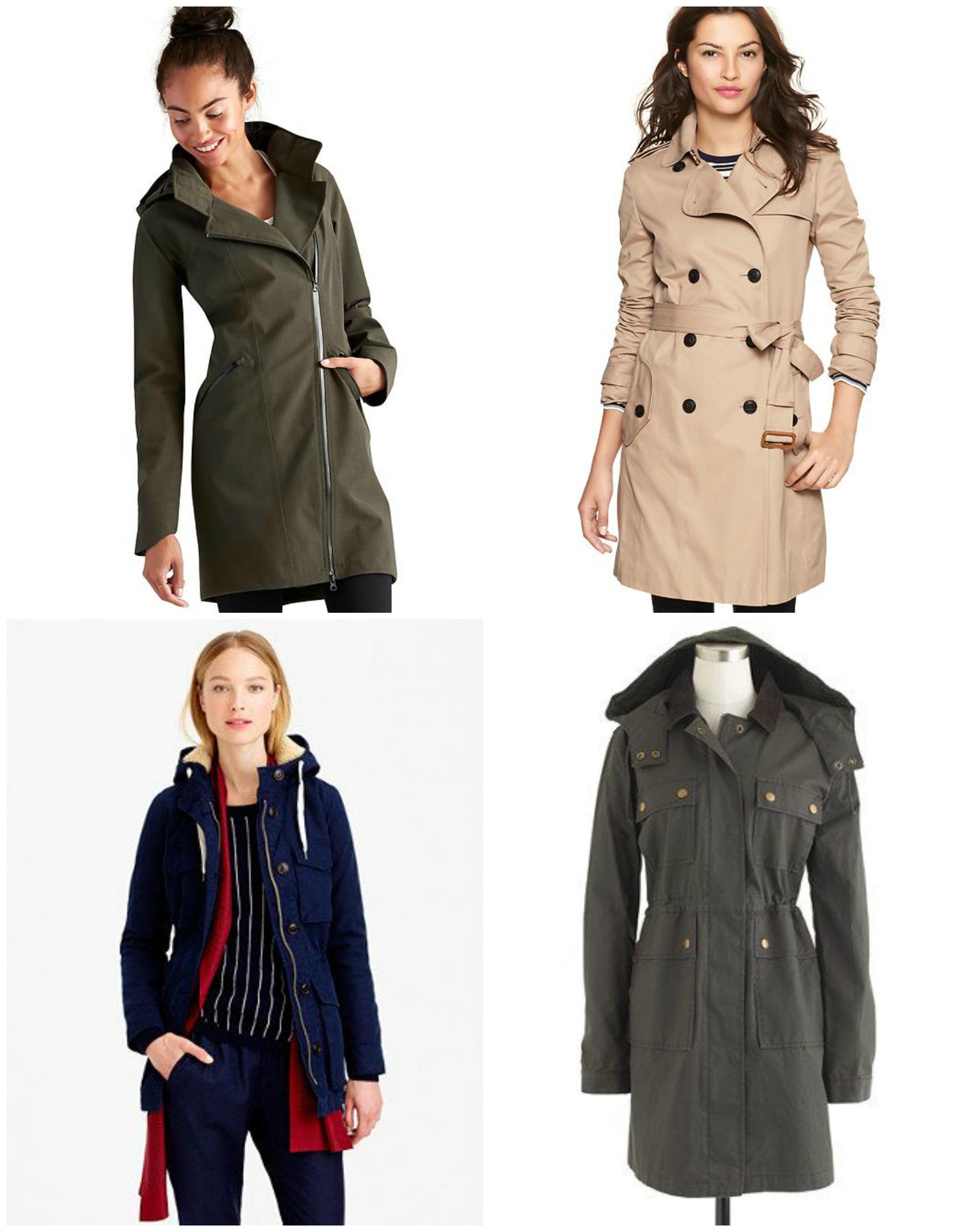 Clockwise from top left: Wetlands Trench // Classic Trench // Long Field Jacket* // Sherpa Hooded Jacket*